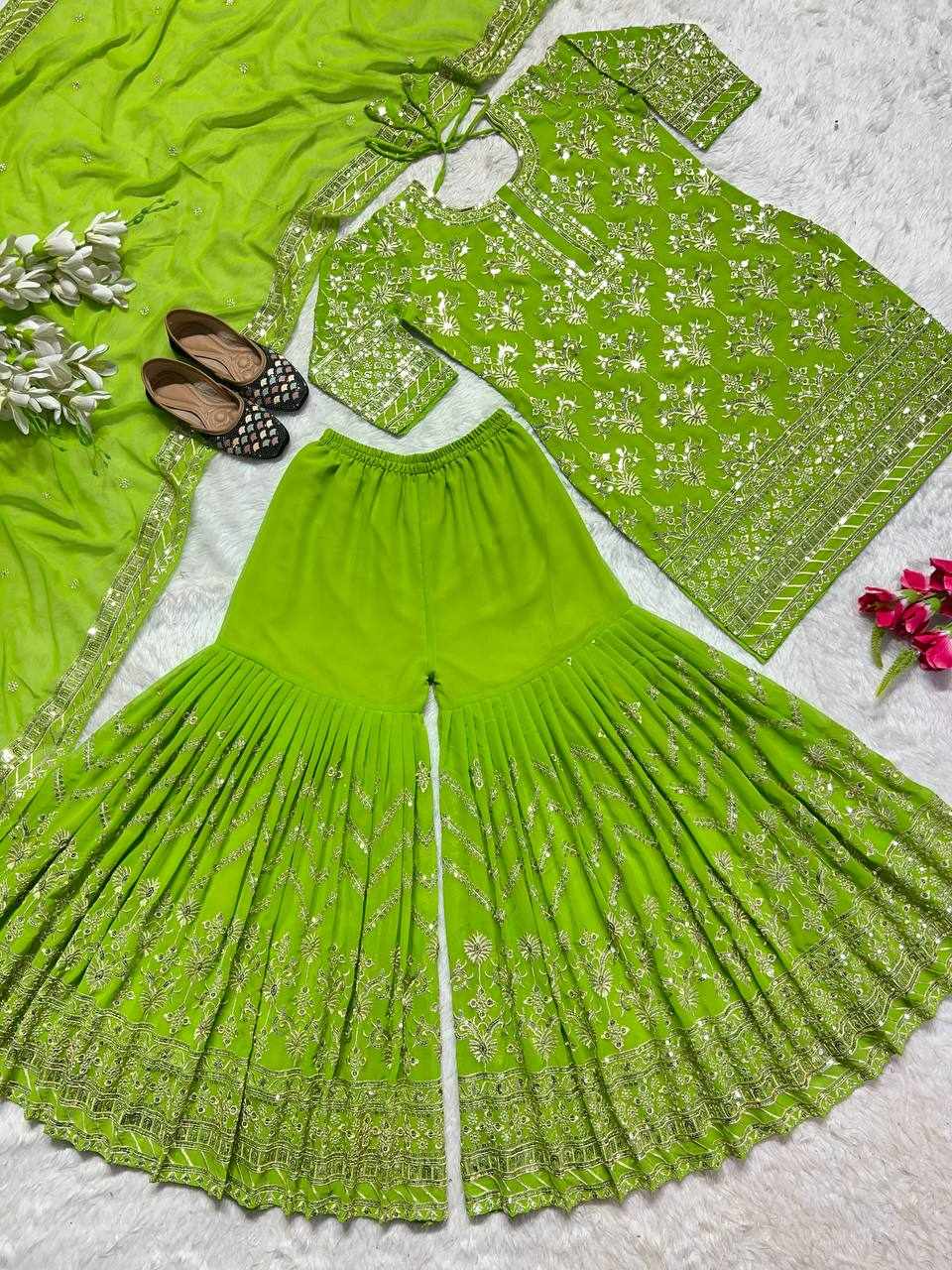 Plazzo Fabrics: Heavy Faux Georgette With 5mm Embroidery Sequence Fully Flair